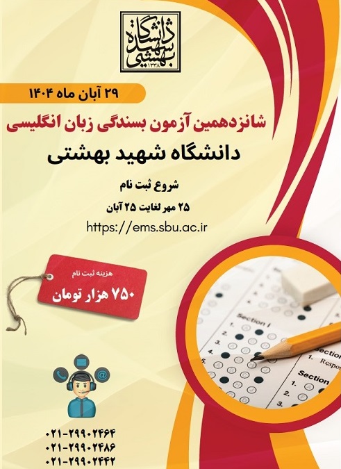 شانزدهمین دوره آزمون بسندگی زبان انگلیسی دانشگاه شهید بهشتی ویژه دانشجویان مقطع دکتری و داوطلبان آزاد، ساعت ۹ صبح روز پنجشنبه ۲۹ آبان ۱۴۰۴ در محل این دانشگاه برگزار خواهد شد.